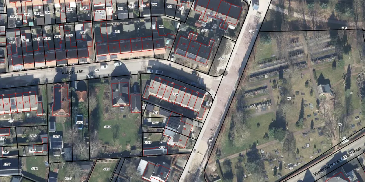 Het perceel waarop Akkerstraat 7 staat heeft een oppervlakte van 658 m². Dit is een groot perceel. De perceeloppervlakte wordt geregistreerd door het Kadaster. Gedetailleerde informatie over de maten van dit perceel kunt u vinden in het rapport Kadastrale kaart met maatvoering van Akkerstraat 7.