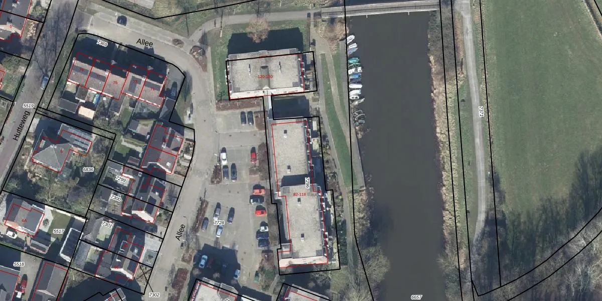 Het perceel waarop Allee 108 staat heeft een oppervlakte van 1300 m². Dit is een zeer groot perceel. De perceeloppervlakte wordt geregistreerd door het Kadaster. Gedetailleerde informatie over de maten van dit perceel kunt u vinden in het rapport Kadastrale kaart met maatvoering van Allee 108.