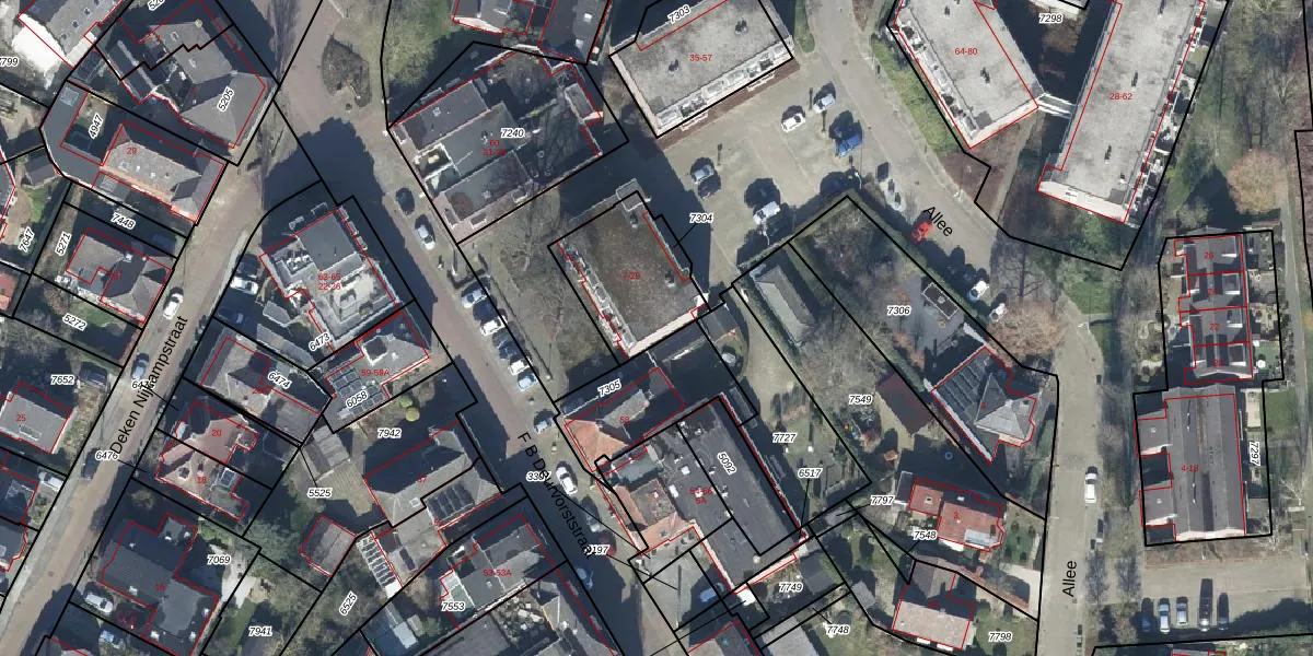 Het perceel waarop Allee 15 staat heeft een oppervlakte van 370 m². Dit is een groot perceel. De perceeloppervlakte wordt geregistreerd door het Kadaster. Gedetailleerde informatie over de maten van dit perceel kunt u vinden in het rapport Kadastrale kaart met maatvoering van Allee 15.
