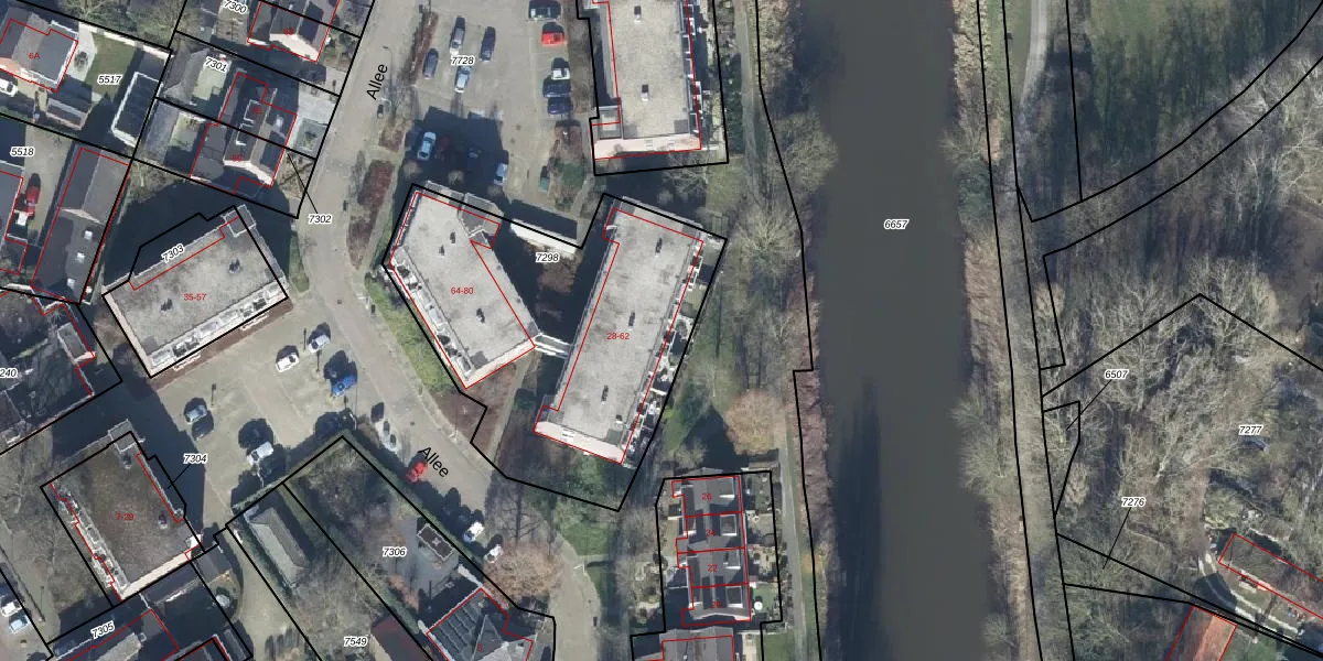Het perceel waarop Allee 34 staat heeft een oppervlakte van 1550 m². Dit is een zeer groot perceel. De perceeloppervlakte wordt geregistreerd door het Kadaster. Gedetailleerde informatie over de maten van dit perceel kunt u vinden in het rapport Kadastrale kaart met maatvoering van Allee 34.