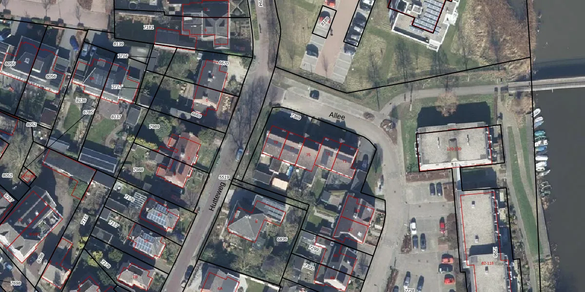 Het perceel waarop Allee 77 staat heeft een oppervlakte van 1415 m². Dit is een zeer groot perceel. De perceeloppervlakte wordt geregistreerd door het Kadaster. Gedetailleerde informatie over de maten van dit perceel kunt u vinden in het rapport Kadastrale kaart met maatvoering van Allee 77.