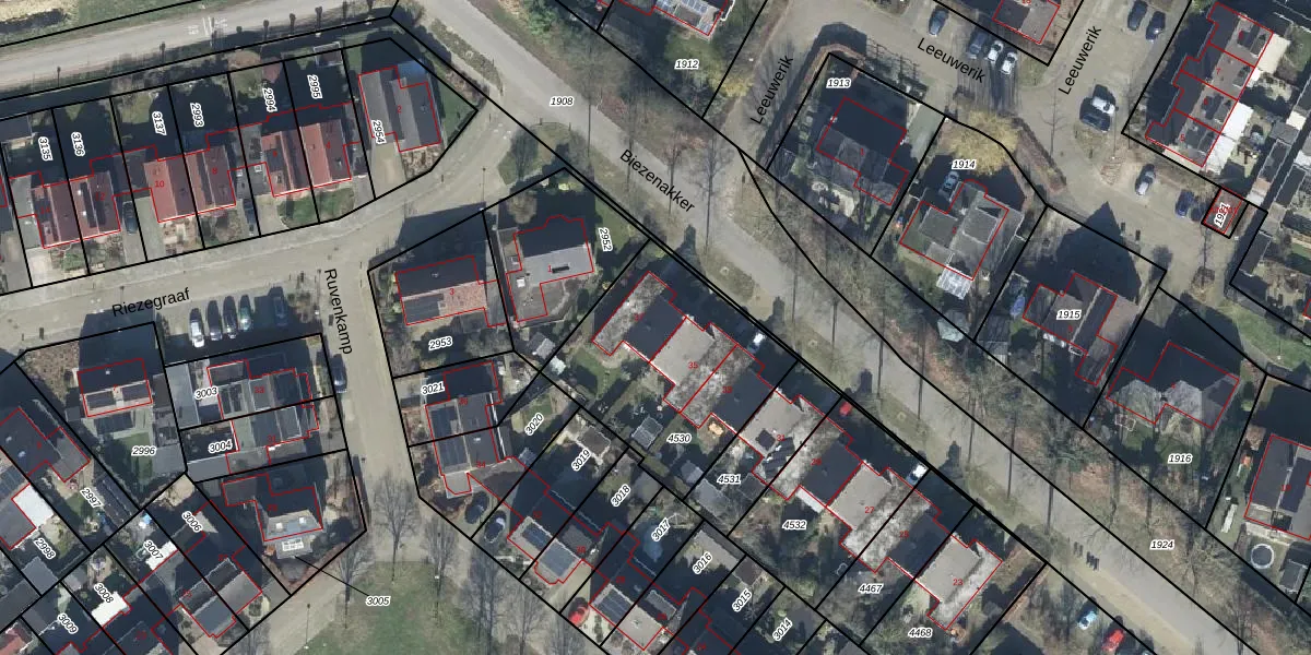 Het perceel waarop Biezenakker 37 staat heeft een oppervlakte van 788 m². Dit is een groot perceel. De perceeloppervlakte wordt geregistreerd door het Kadaster. Gedetailleerde informatie over de maten van dit perceel kunt u vinden in het rapport Kadastrale kaart met maatvoering van Biezenakker 37.