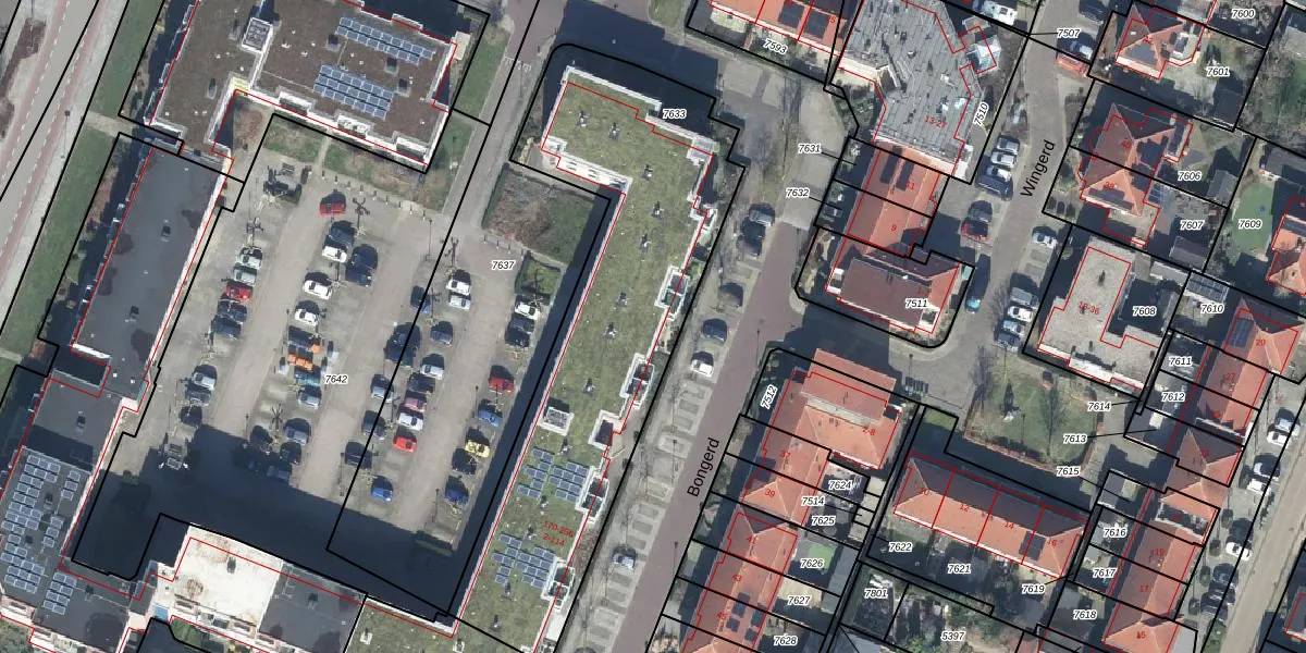 Het perceel waarop Bongerd 184 staat heeft een oppervlakte van 1848 m². Dit is een zeer groot perceel. De perceeloppervlakte wordt geregistreerd door het Kadaster. Gedetailleerde informatie over de maten van dit perceel kunt u vinden in het rapport Kadastrale kaart met maatvoering van Bongerd 184.