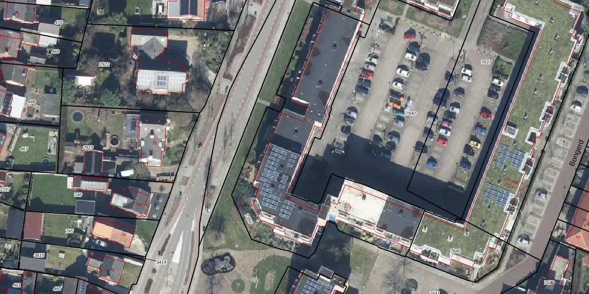 Het perceel waarop Bongerd 82 staat heeft een oppervlakte van 2300 m². Dit is een zeer groot perceel. De perceeloppervlakte wordt geregistreerd door het Kadaster. Gedetailleerde informatie over de maten van dit perceel kunt u vinden in het rapport Kadastrale kaart met maatvoering van Bongerd 82.