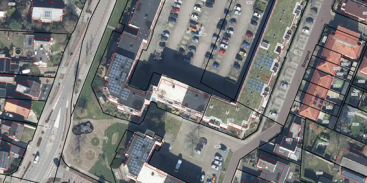 Het perceel waarop Bongerd 96 staat heeft een oppervlakte van 2300 m². Dit is een zeer groot perceel. De perceeloppervlakte wordt geregistreerd door het Kadaster. Gedetailleerde informatie over de maten van dit perceel kunt u vinden in het rapport Kadastrale kaart met maatvoering van Bongerd 96.