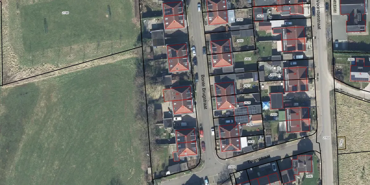 Het perceel waarop Bonte Brugstraat 10 staat heeft een oppervlakte van 3043 m². Dit is een zeer groot perceel. De perceeloppervlakte wordt geregistreerd door het Kadaster. Gedetailleerde informatie over de maten van dit perceel kunt u vinden in het rapport Kadastrale kaart met maatvoering van Bonte Brugstraat 10.
