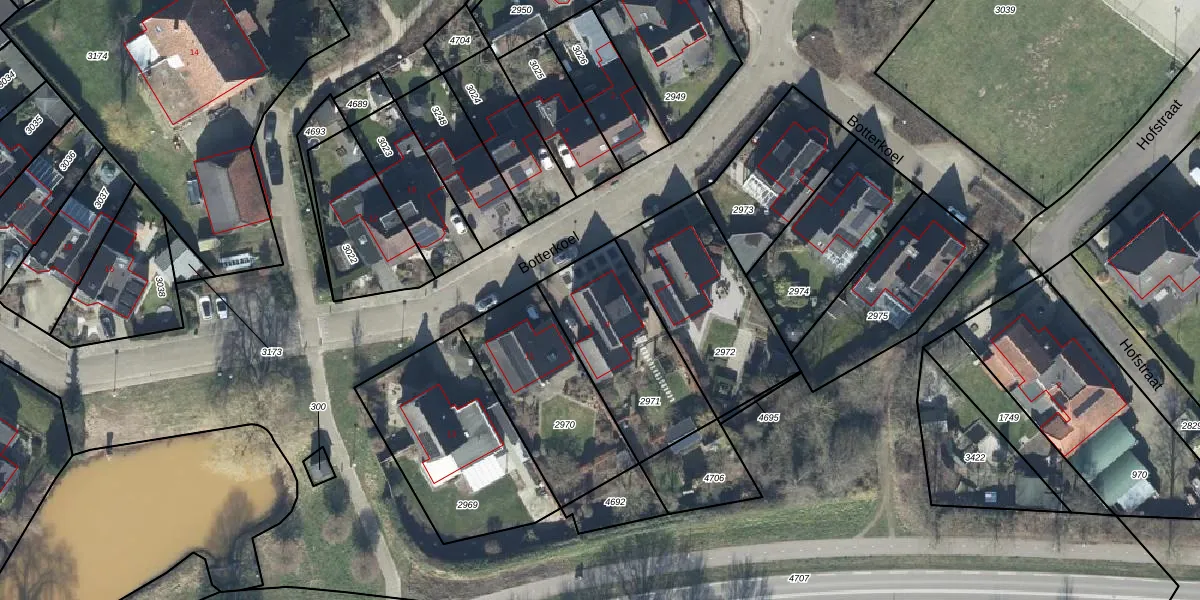 Het perceel waarop Botterkoel 9 staat heeft een oppervlakte van 515 m². Dit is een groot perceel. De perceeloppervlakte wordt geregistreerd door het Kadaster. Gedetailleerde informatie over de maten van dit perceel kunt u vinden in het rapport Kadastrale kaart met maatvoering van Botterkoel 9.