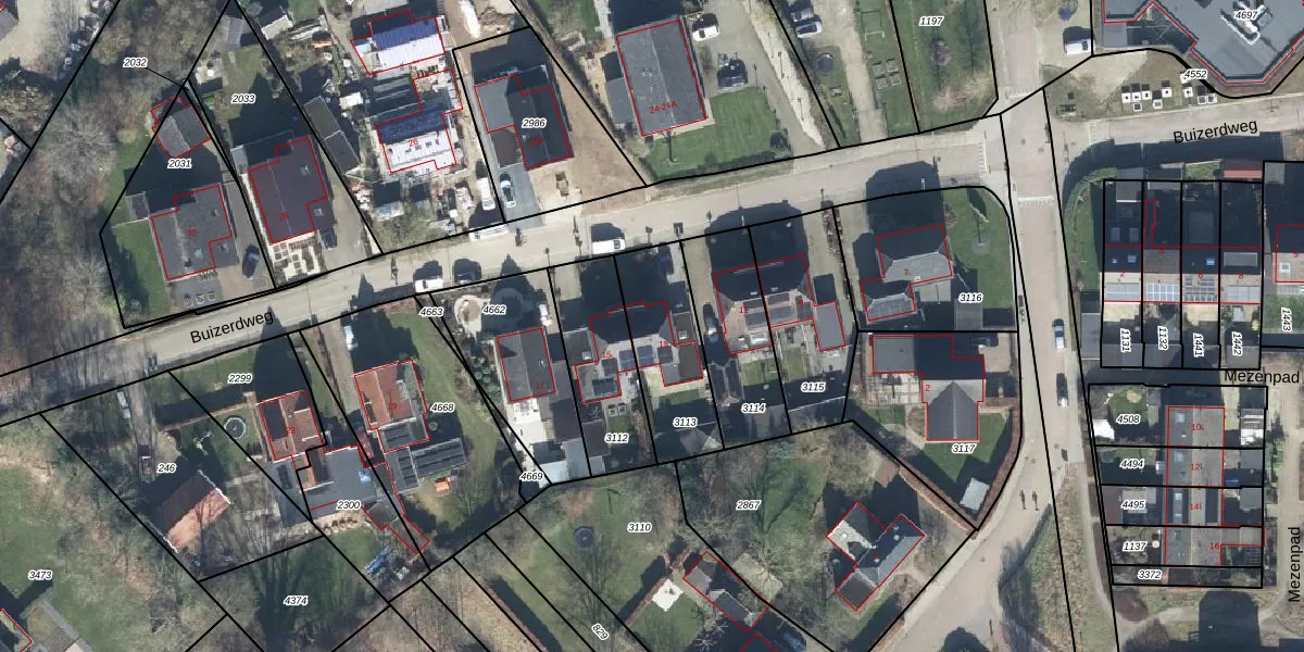 Buizerdweg 13 is gelegen op kadastraal perceel GDG00L3113. Deze kadastrale aanduiding is uniek en wordt gebruikt door het Kadaster om eigendomsrechten en andere zakelijke rechten vast te leggen. Het perceel maakt onderdeel uit van de kadastrale gemeente Gendringen.