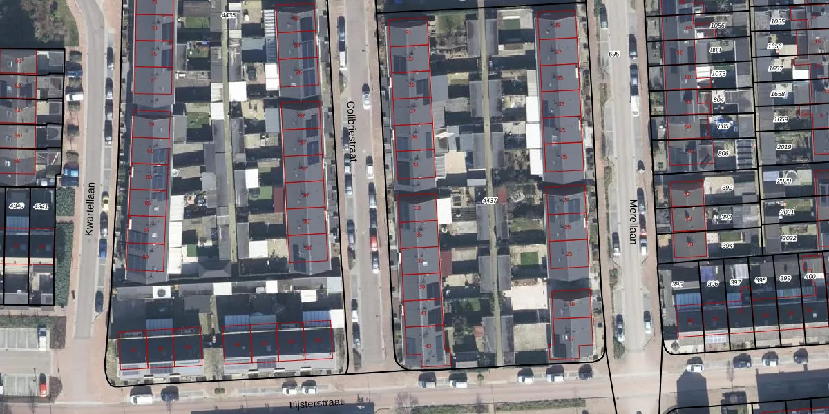 Het perceel waarop Colibriestraat 33 staat heeft een oppervlakte van 4374 m². Dit is een zeer groot perceel. De perceeloppervlakte wordt geregistreerd door het Kadaster. Gedetailleerde informatie over de maten van dit perceel kunt u vinden in het rapport Kadastrale kaart met maatvoering van Colibriestraat 33.
