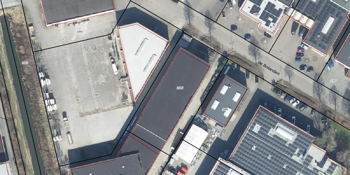 Het perceel waarop de Bolanden 3 staat heeft een oppervlakte van 1935 m². Dit is een zeer groot perceel. De perceeloppervlakte wordt geregistreerd door het Kadaster. Gedetailleerde informatie over de maten van dit perceel kunt u vinden in het rapport Kadastrale kaart met maatvoering van de Bolanden 3.
