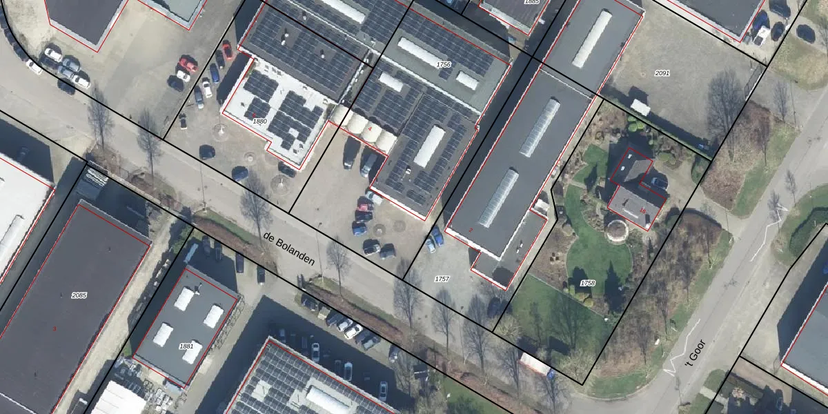 Het perceel waarop de Bolanden 4 staat heeft een oppervlakte van 1990 m². Dit is een zeer groot perceel. De perceeloppervlakte wordt geregistreerd door het Kadaster. Gedetailleerde informatie over de maten van dit perceel kunt u vinden in het rapport Kadastrale kaart met maatvoering van de Bolanden 4.