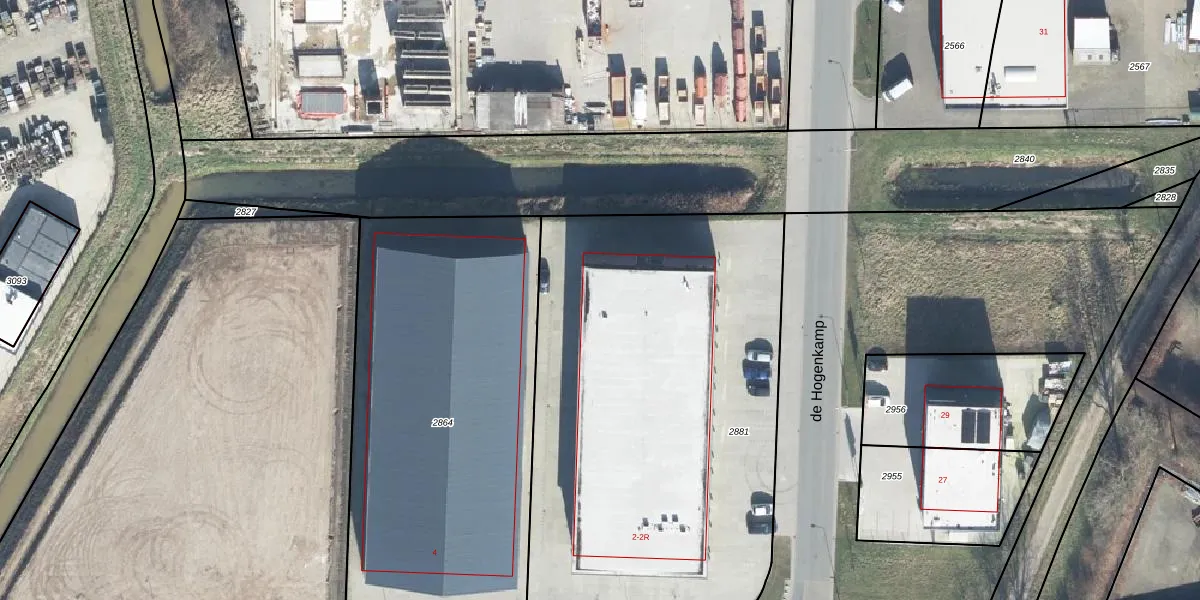 Het perceel waarop de Hogenkamp 2-H staat heeft een oppervlakte van 2750 m². Dit is een zeer groot perceel. De perceeloppervlakte wordt geregistreerd door het Kadaster. Gedetailleerde informatie over de maten van dit perceel kunt u vinden in het rapport Kadastrale kaart met maatvoering van de Hogenkamp 2-H.