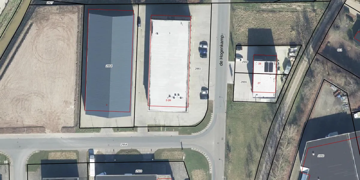 Het perceel waarop de Hogenkamp 2-P staat heeft een oppervlakte van 2750 m². Dit is een zeer groot perceel. De perceeloppervlakte wordt geregistreerd door het Kadaster. Gedetailleerde informatie over de maten van dit perceel kunt u vinden in het rapport Kadastrale kaart met maatvoering van de Hogenkamp 2-P.