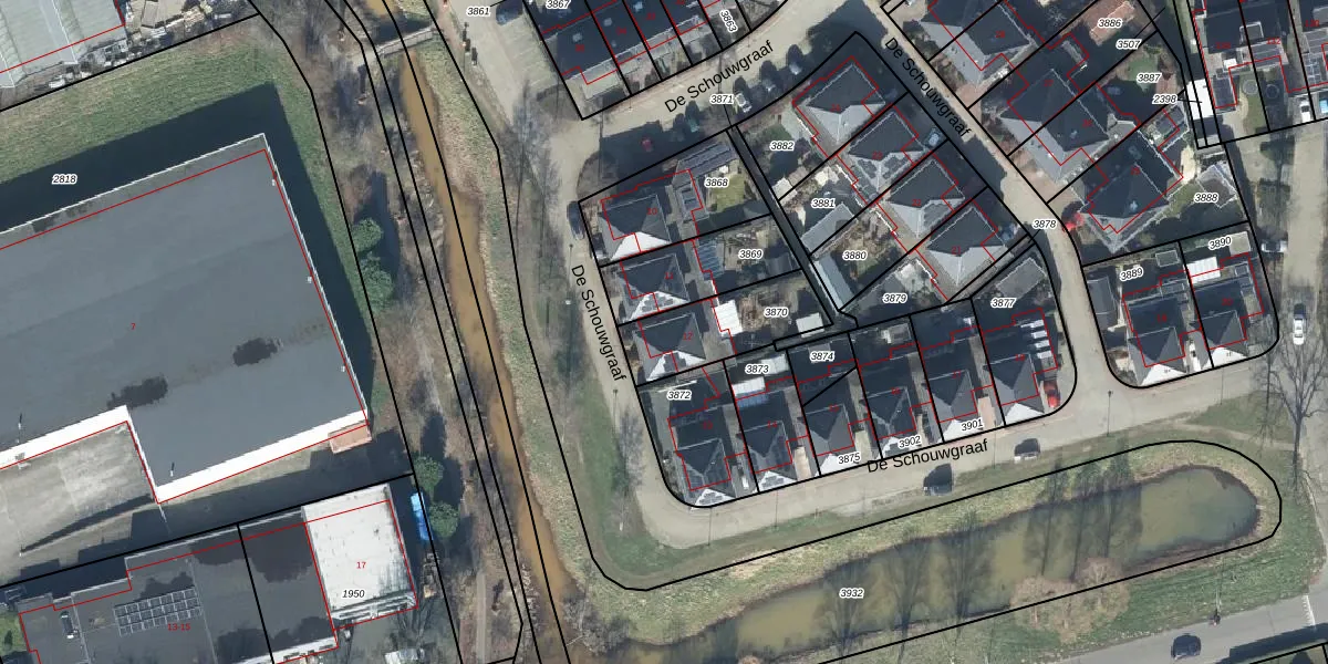 Het perceel waarop De Schouwgraaf 12 staat heeft een oppervlakte van 286 m². Dit is een middelgroot perceel. De perceeloppervlakte wordt geregistreerd door het Kadaster. Gedetailleerde informatie over de maten van dit perceel kunt u vinden in het rapport Kadastrale kaart met maatvoering van De Schouwgraaf 12.