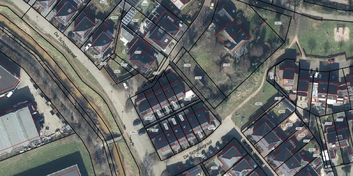 Het perceel waarop De Schouwgraaf 9 staat heeft een oppervlakte van 200 m². Dit is een middelgroot perceel. De perceeloppervlakte wordt geregistreerd door het Kadaster. Gedetailleerde informatie over de maten van dit perceel kunt u vinden in het rapport Kadastrale kaart met maatvoering van De Schouwgraaf 9.