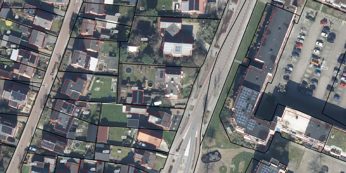 Gebruik de zoekbalk of klik op een perceel voor informatie over de adressen binnen dit perceel.