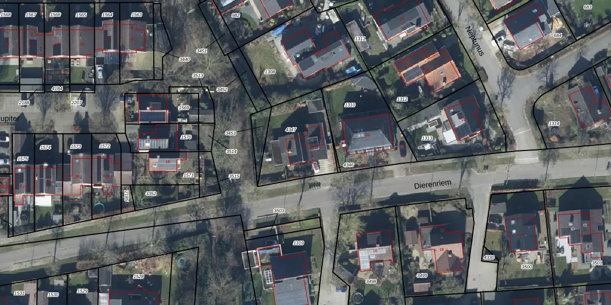 Het perceel waarop Dierenriem 27 staat heeft een oppervlakte van 569 m². Dit is een groot perceel. De perceeloppervlakte wordt geregistreerd door het Kadaster. Gedetailleerde informatie over de maten van dit perceel kunt u vinden in het rapport Kadastrale kaart met maatvoering van Dierenriem 27.