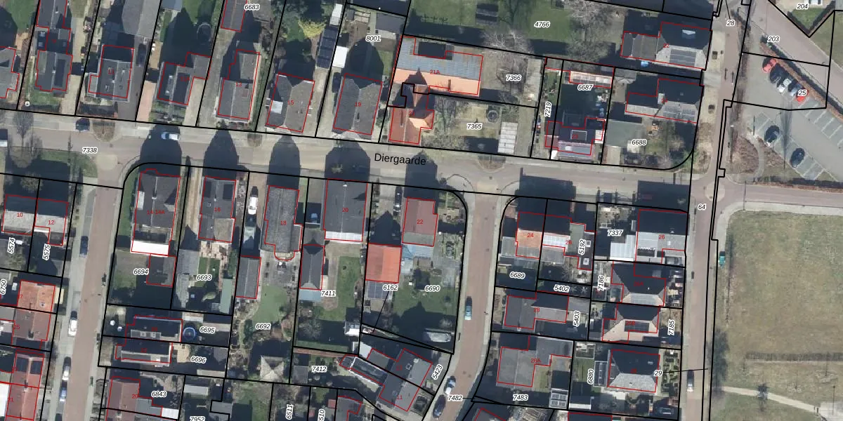 Gebruik de zoekbalk of klik op een perceel voor informatie over de adressen binnen dit perceel.