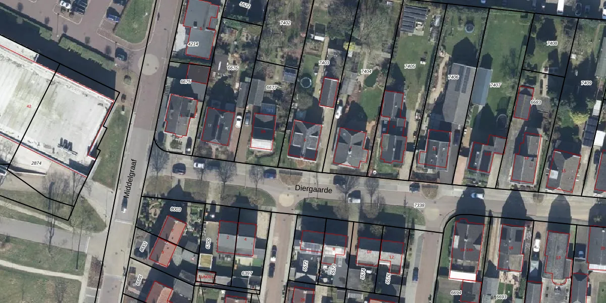 Het perceel waarop Diergaarde 5 staat heeft een oppervlakte van 870 m². Dit is een groot perceel. De perceeloppervlakte wordt geregistreerd door het Kadaster. Gedetailleerde informatie over de maten van dit perceel kunt u vinden in het rapport Kadastrale kaart met maatvoering van Diergaarde 5.