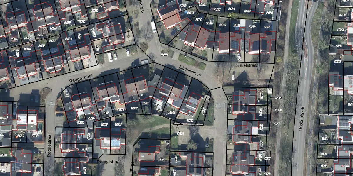 Gebruik de zoekbalk of klik op een perceel voor informatie over de adressen binnen dit perceel.