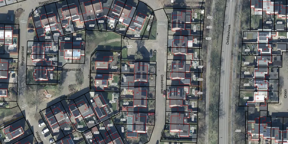 Gebruik de zoekbalk of klik op een perceel voor informatie over de adressen binnen dit perceel.