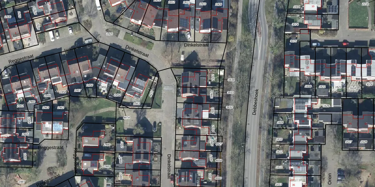 Gebruik de zoekbalk of klik op een perceel voor informatie over de adressen binnen dit perceel.