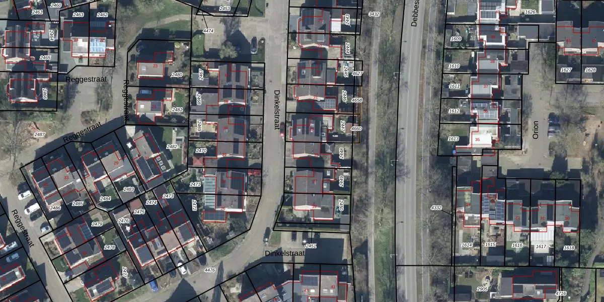 Gebruik de zoekbalk of klik op een perceel voor informatie over de adressen binnen dit perceel.