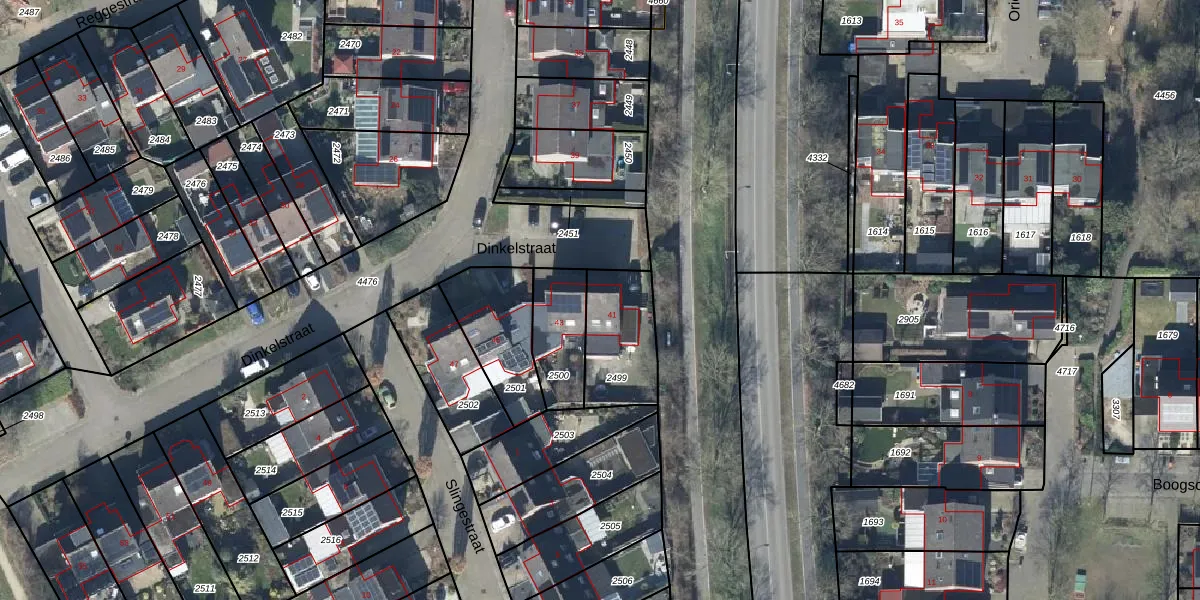 Gebruik de zoekbalk of klik op een perceel voor informatie over de adressen binnen dit perceel.