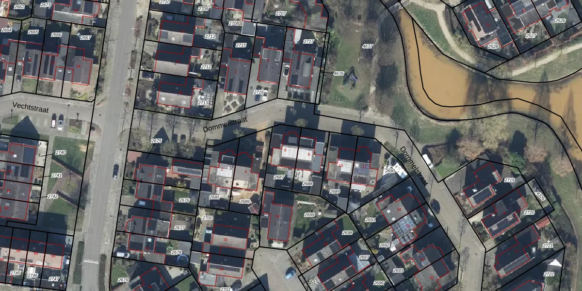 Het perceel waarop Dommelstraat 6 staat heeft een oppervlakte van 215 m². Dit is een middelgroot perceel. De perceeloppervlakte wordt geregistreerd door het Kadaster. Gedetailleerde informatie over de maten van dit perceel kunt u vinden in het rapport Kadastrale kaart met maatvoering van Dommelstraat 6.