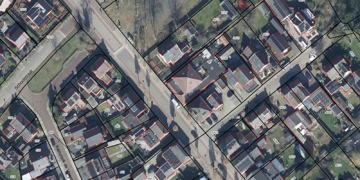 Het perceel waarop Dr Ariënsstraat 13 staat heeft een oppervlakte van 590 m². Dit is een groot perceel. De perceeloppervlakte wordt geregistreerd door het Kadaster. Gedetailleerde informatie over de maten van dit perceel kunt u vinden in het rapport Kadastrale kaart met maatvoering van Dr Ariënsstraat 13.