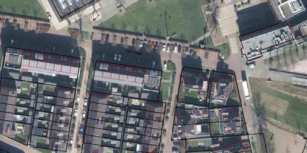 DRU-laan 9 is gelegen op kadastraal perceel GDG00T8092. Deze kadastrale aanduiding is uniek en wordt gebruikt door het Kadaster om eigendomsrechten en andere zakelijke rechten vast te leggen. Het perceel maakt onderdeel uit van de kadastrale gemeente Gendringen.