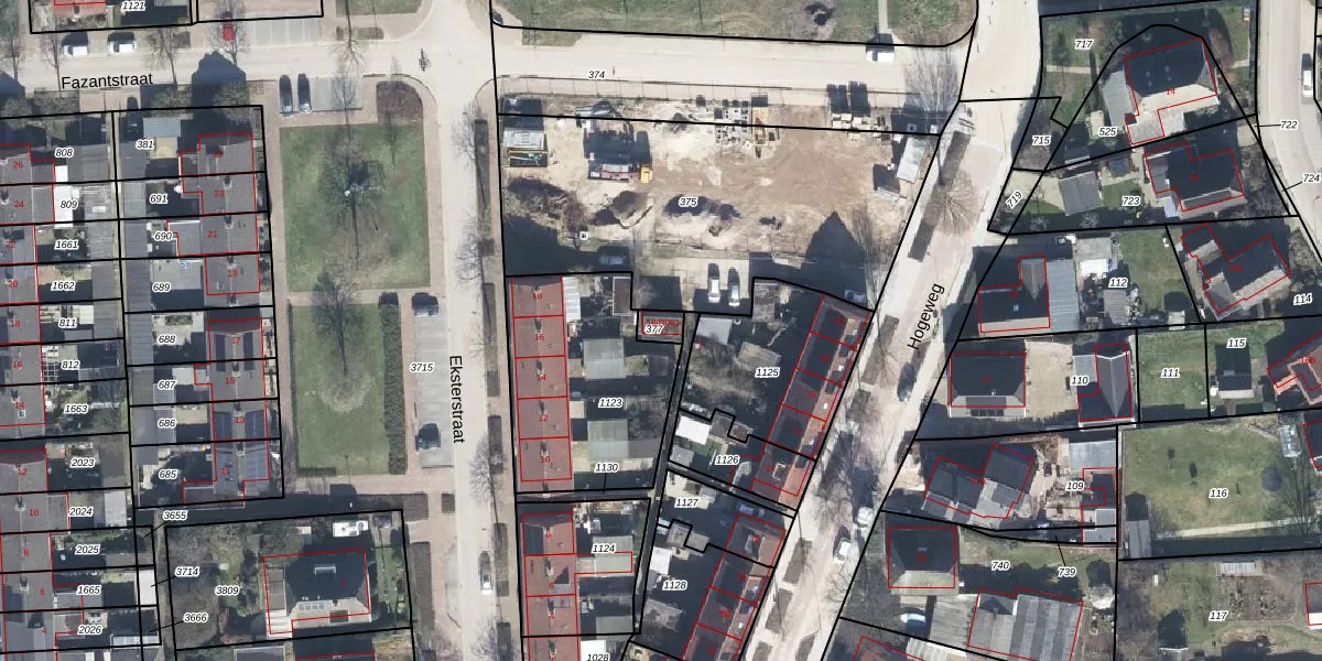 Het perceel waarop Eksterstraat 18-N001 staat heeft een oppervlakte van 32 m². Dit is een klein perceel. De perceeloppervlakte wordt geregistreerd door het Kadaster. Gedetailleerde informatie over de maten van dit perceel kunt u vinden in het rapport Kadastrale kaart met maatvoering van Eksterstraat 18-N001.