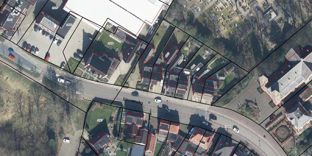 Het perceel waarop Ettenseweg 85 staat heeft een oppervlakte van 400 m². Dit is een groot perceel. De perceeloppervlakte wordt geregistreerd door het Kadaster. Gedetailleerde informatie over de maten van dit perceel kunt u vinden in het rapport Kadastrale kaart met maatvoering van Ettenseweg 85.
