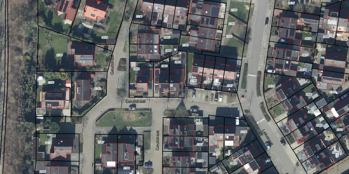 Het perceel waarop Geulstraat 2 staat heeft een oppervlakte van 245 m². Dit is een middelgroot perceel. De perceeloppervlakte wordt geregistreerd door het Kadaster. Gedetailleerde informatie over de maten van dit perceel kunt u vinden in het rapport Kadastrale kaart met maatvoering van Geulstraat 2.