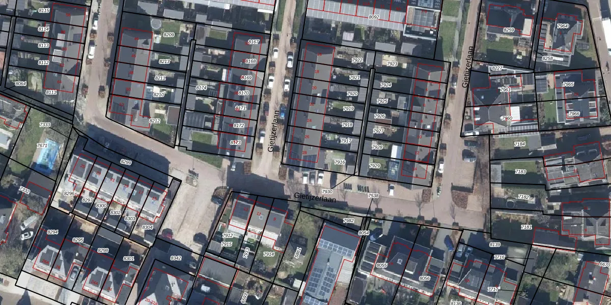 Het perceel waarop Gietijzerlaan 28 staat heeft een oppervlakte van 177 m². Dit is een middelgroot perceel. De perceeloppervlakte wordt geregistreerd door het Kadaster. Gedetailleerde informatie over de maten van dit perceel kunt u vinden in het rapport Kadastrale kaart met maatvoering van Gietijzerlaan 28.