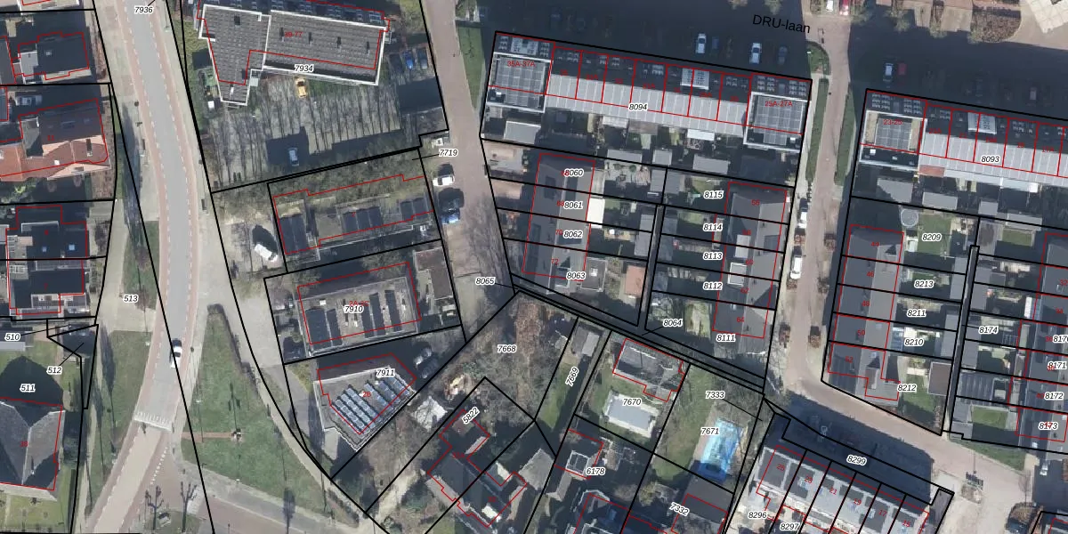 Gebruik de zoekbalk of klik op een perceel voor informatie over de adressen binnen dit perceel.