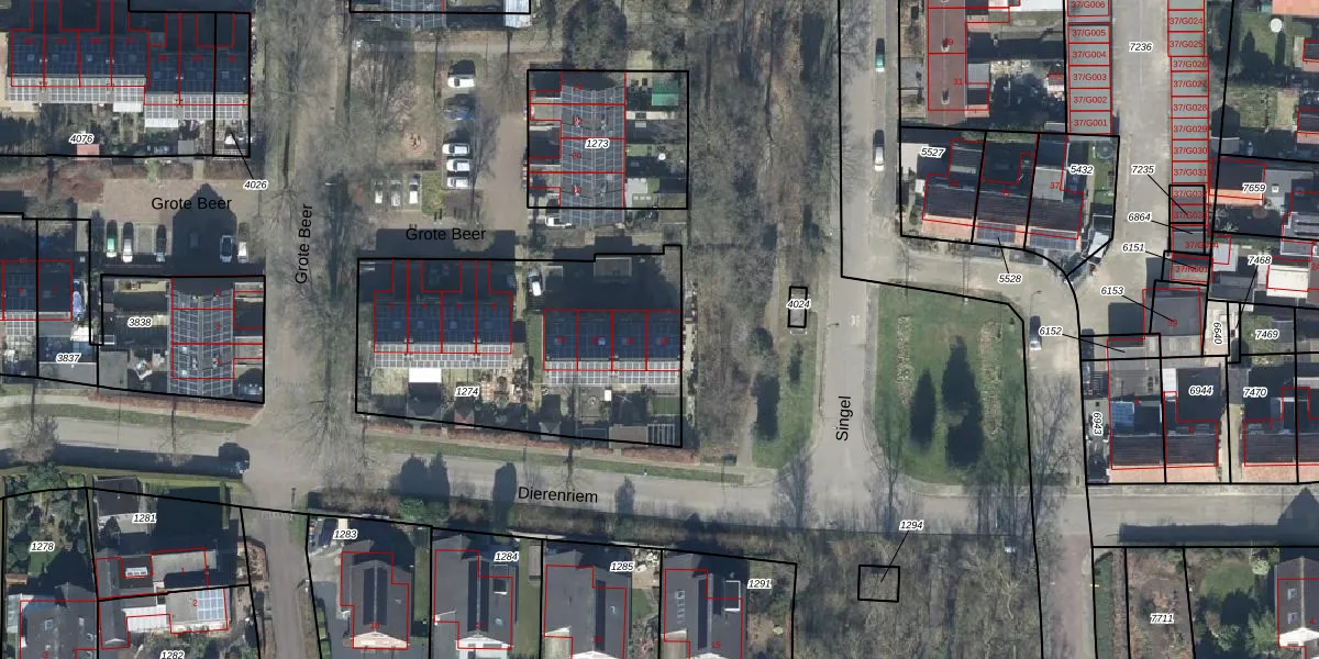 Het perceel waarop Grote Beer 16 staat heeft een oppervlakte van 1285 m². Dit is een zeer groot perceel. De perceeloppervlakte wordt geregistreerd door het Kadaster. Gedetailleerde informatie over de maten van dit perceel kunt u vinden in het rapport Kadastrale kaart met maatvoering van Grote Beer 16.