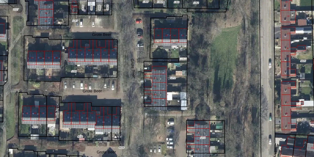 Het perceel waarop Grote Beer 32 staat heeft een oppervlakte van 1420 m². Dit is een zeer groot perceel. De perceeloppervlakte wordt geregistreerd door het Kadaster. Gedetailleerde informatie over de maten van dit perceel kunt u vinden in het rapport Kadastrale kaart met maatvoering van Grote Beer 32.