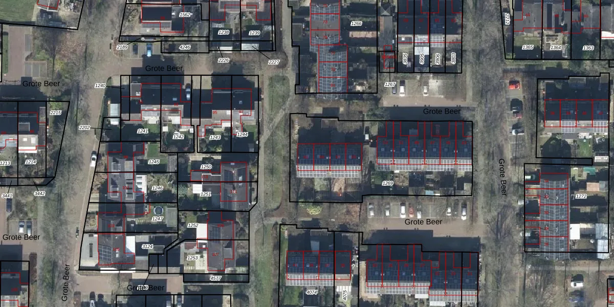 Het perceel waarop Grote Beer 61 staat heeft een oppervlakte van 1515 m². Dit is een zeer groot perceel. De perceeloppervlakte wordt geregistreerd door het Kadaster. Gedetailleerde informatie over de maten van dit perceel kunt u vinden in het rapport Kadastrale kaart met maatvoering van Grote Beer 61.