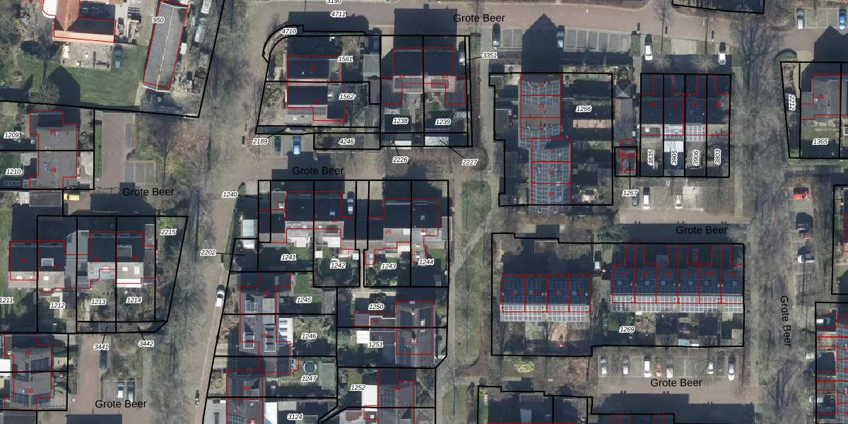 Gebruik de zoekbalk of klik op een perceel voor informatie over de adressen binnen dit perceel.