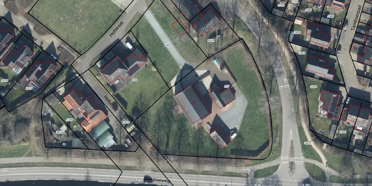 Het perceel waarop Hofstraat 4-B staat heeft een oppervlakte van 3120 m². Dit is een zeer groot perceel. De perceeloppervlakte wordt geregistreerd door het Kadaster. Gedetailleerde informatie over de maten van dit perceel kunt u vinden in het rapport Kadastrale kaart met maatvoering van Hofstraat 4-B.