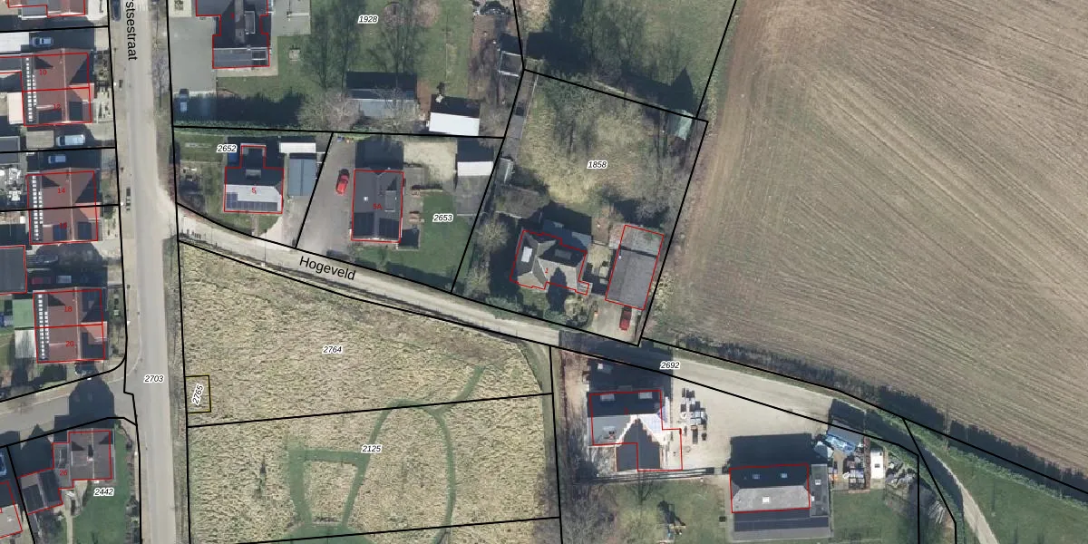 Hogeveld 1 is gelegen op kadastraal perceel GDG00C1858. Deze kadastrale aanduiding is uniek en wordt gebruikt door het Kadaster om eigendomsrechten en andere zakelijke rechten vast te leggen. Het perceel maakt onderdeel uit van de kadastrale gemeente Gendringen.