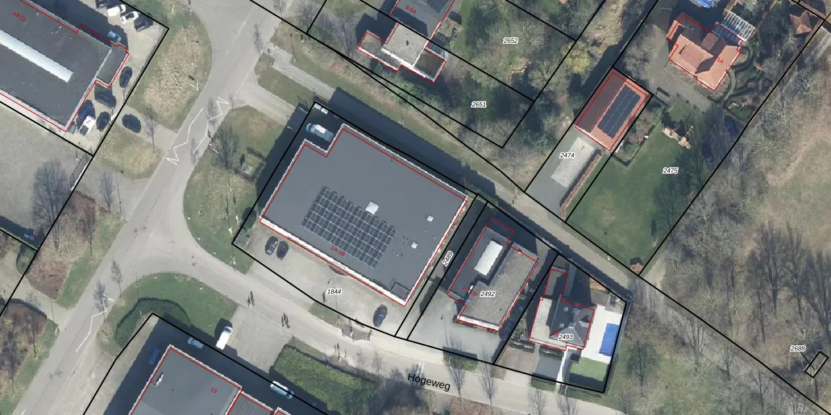 Hogeweg 1-B is gelegen op kadastraal perceel GDG00M1844. Deze kadastrale aanduiding is uniek en wordt gebruikt door het Kadaster om eigendomsrechten en andere zakelijke rechten vast te leggen. Het perceel maakt onderdeel uit van de kadastrale gemeente Gendringen.