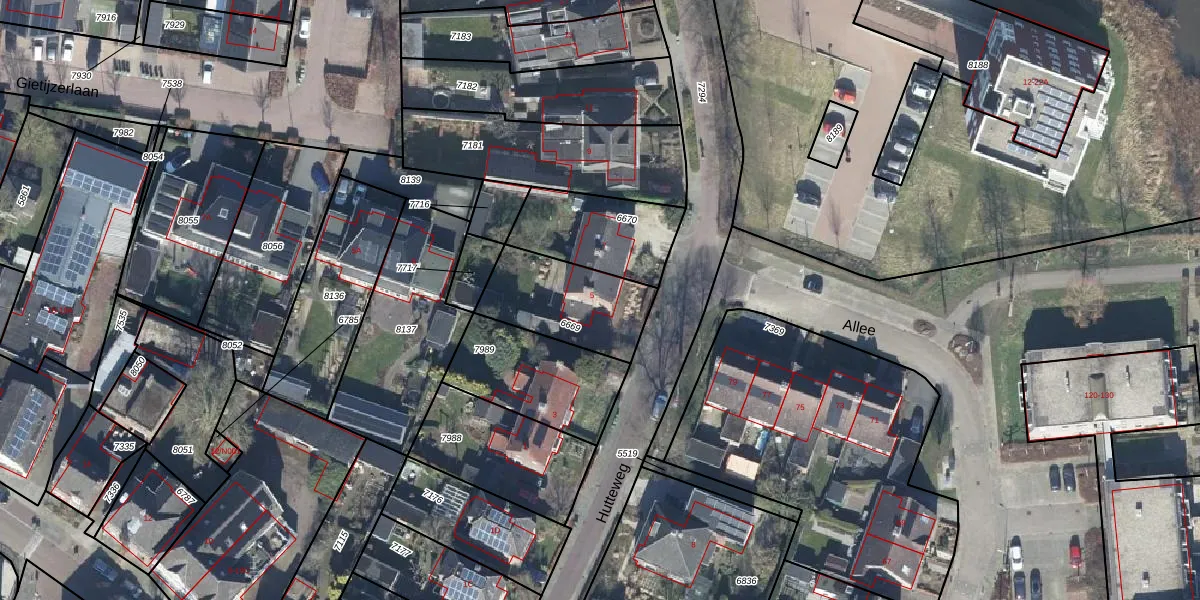 Gebruik de zoekbalk of klik op een perceel voor informatie over de adressen binnen dit perceel.