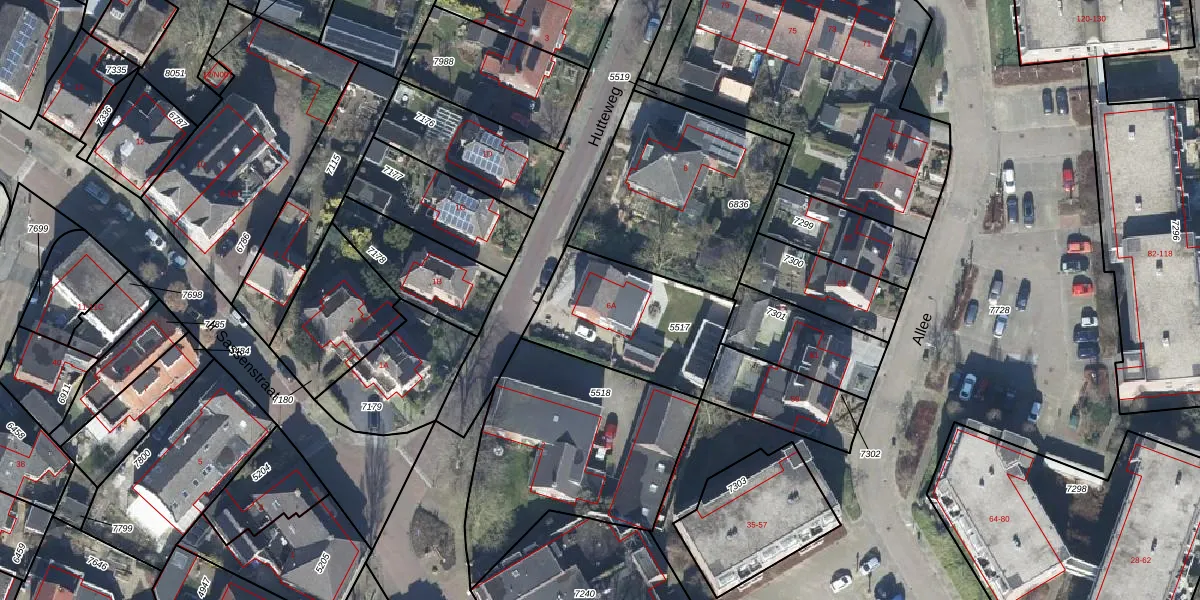 Het perceel waarop Hutteweg 6-A staat heeft een oppervlakte van 520 m². Dit is een groot perceel. De perceeloppervlakte wordt geregistreerd door het Kadaster. Gedetailleerde informatie over de maten van dit perceel kunt u vinden in het rapport Kadastrale kaart met maatvoering van Hutteweg 6-A.