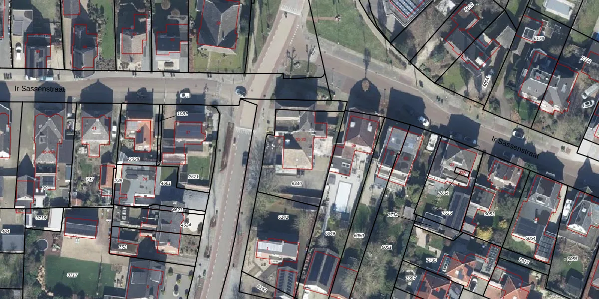 Ir Sassenstraat 33 is gelegen op kadastraal perceel GDG00T6449. Deze kadastrale aanduiding is uniek en wordt gebruikt door het Kadaster om eigendomsrechten en andere zakelijke rechten vast te leggen. Het perceel maakt onderdeel uit van de kadastrale gemeente Gendringen.