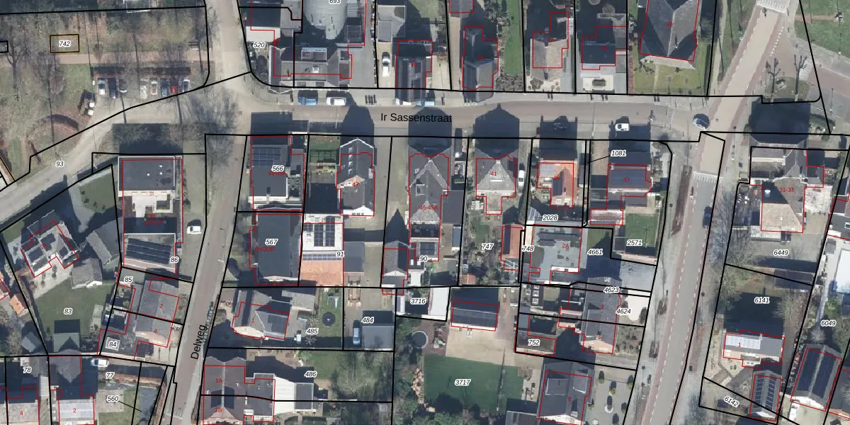 Het perceel waarop Ir Sassenstraat 45-A staat heeft een oppervlakte van 645 m². Dit is een groot perceel. De perceeloppervlakte wordt geregistreerd door het Kadaster. Gedetailleerde informatie over de maten van dit perceel kunt u vinden in het rapport Kadastrale kaart met maatvoering van Ir Sassenstraat 45-A.