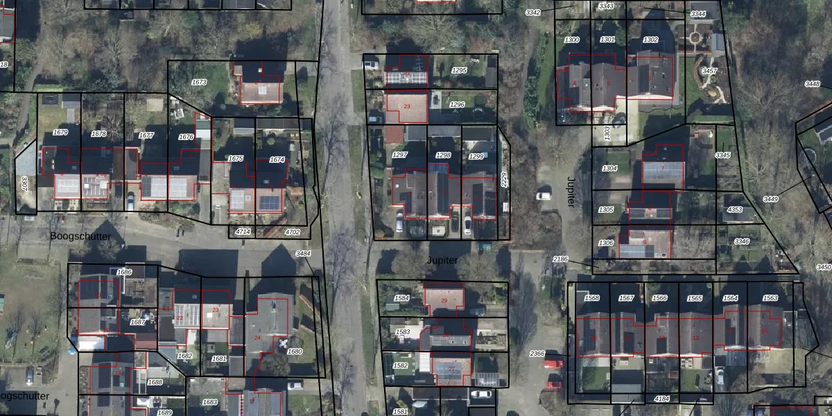 Het perceel waarop Jupiter 1 staat heeft een oppervlakte van 370 m². Dit is een groot perceel. De perceeloppervlakte wordt geregistreerd door het Kadaster. Gedetailleerde informatie over de maten van dit perceel kunt u vinden in het rapport Kadastrale kaart met maatvoering van Jupiter 1.