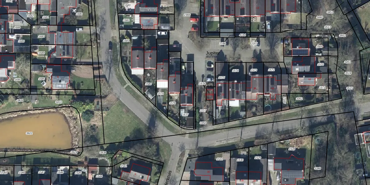 Het perceel waarop Jupiter 23 staat heeft een oppervlakte van 255 m². Dit is een middelgroot perceel. De perceeloppervlakte wordt geregistreerd door het Kadaster. Gedetailleerde informatie over de maten van dit perceel kunt u vinden in het rapport Kadastrale kaart met maatvoering van Jupiter 23.