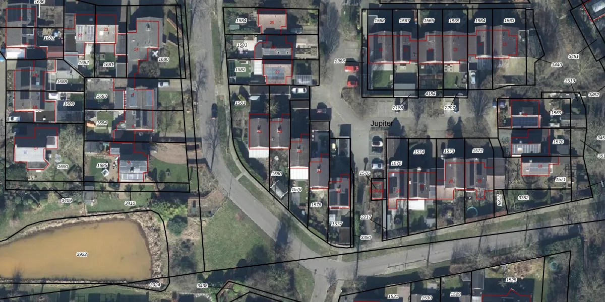 Het perceel waarop Jupiter 25 staat heeft een oppervlakte van 260 m². Dit is een middelgroot perceel. De perceeloppervlakte wordt geregistreerd door het Kadaster. Gedetailleerde informatie over de maten van dit perceel kunt u vinden in het rapport Kadastrale kaart met maatvoering van Jupiter 25.
